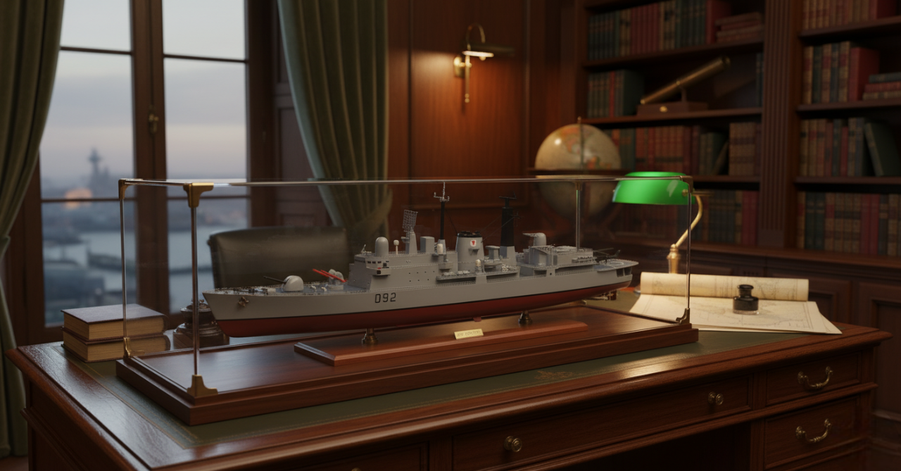 Designed by the Royal Navy and launched in 1980, HMS Liverpool represents Cold War destroyer design. Angular profiles and radar-led architecture emphasize tactical precision and strength.
