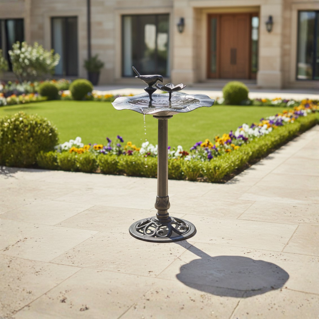 The Marion Garden Bird Bath is a sculptural outdoor accent cast in aluminium for enduring beauty. Its refined form and classical proportions invite nature while elevating gardens, courtyards, and landscape designs with quiet elegance.
